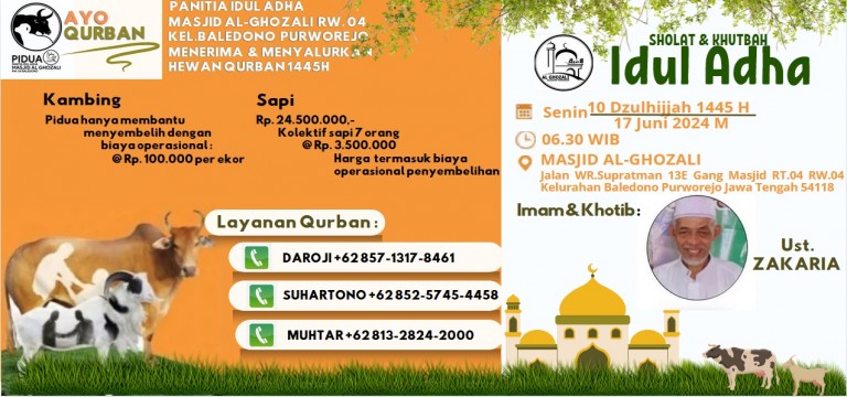 | Jumat | 29-Sep-23 | KH. Zakaria | KH. Zakaria | Jupriyanto | Jumat Pon (Sie Peribadatan) |
